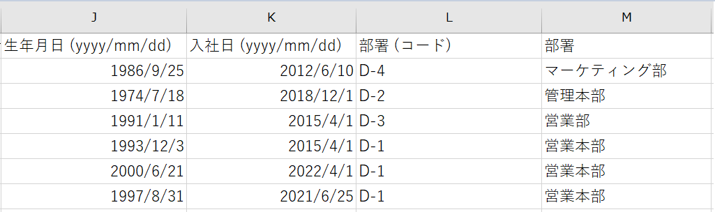2024年9月18日 ユーザー設定のCSVファイルで項目の順番が一部変更されます 2024年09月12日 05:28 更新 ユーザー設定のCSVファイルで項目の順番が一部変更されます 変更前 J列:部署(コード) K列:部署 L列:生年月日 M列:入社日 変更後 J列:生年月日 K列:入社日 L列:部署(コード) M列:部署